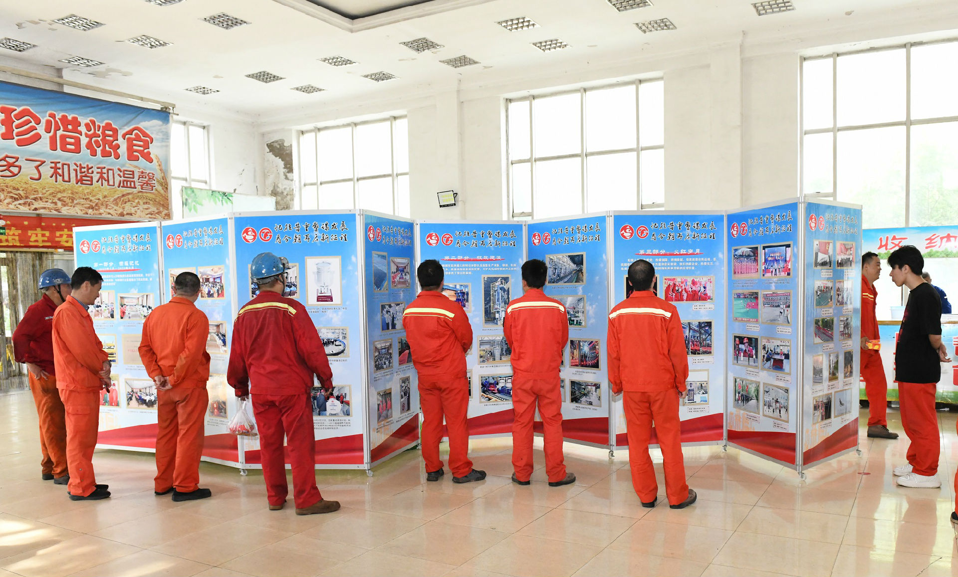 為了方便員工觀展,本次圖片展首先從公司辦公樓開始展出,然后在各員工食堂依次展出,讓更多員工近距離感受精神傳承和時代價值。